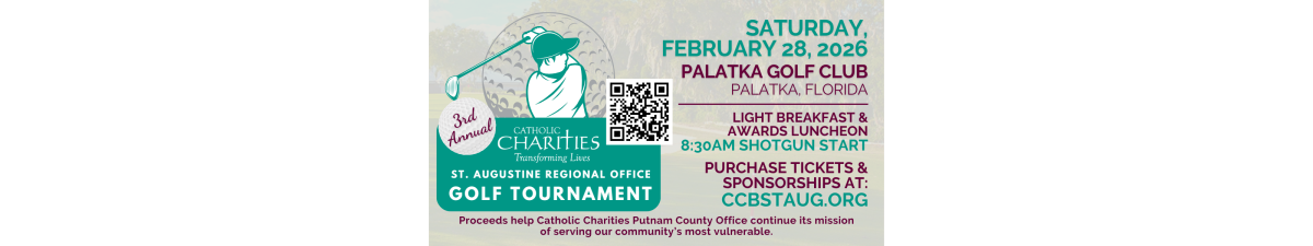 Mark your calendars for Saturday, February 28, 2026, as Catholic Charities of St. Augustine invites you to the highly anticipated 3rd Annual Putnam County Golf Tournament at the beautiful Palatka Golf Club! From 7:30AM to 1:00PM, golfers and community supporters will come together for a day filled with camaraderie, excitement, and purpose. Participants can look forward to thrilling contests on the course and our 50/50 Cash Raffle, all culminating in an awards luncheon celebrating the day's achievements. Every swing, every ticket purchased, and every sponsorship dollar will contribute to the vital work of Catholic Charities as we strive to uplift our community's most valuable members. Don't miss out on this incredible opportunity to make a difference while enjoying a day on the green!